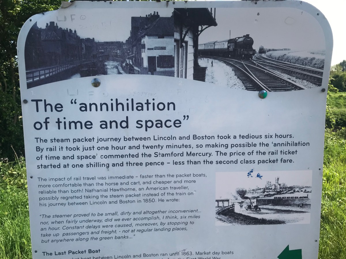 Back in 1850, the Stamford Mercury was so impressed with the impact that train travel was having on the journey from Lincoln to Boston (reducing it from a tedious six hours to just over eighty minutes), it proclaimed in a hyperbolic frenzy that rail travel now made possible the ‘annihilation of time and space’.